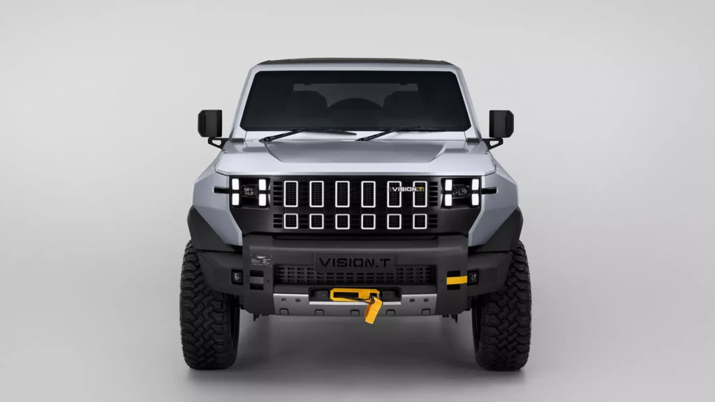 • Vision T: Rugged, बॉक्सी और ऑफ-रोडिंग के लिए तैयार; Thar जैसी झलक, 227mm ग्राउंड क्लीयरेंस, दमदार बंपर और प्रोविजन विंच आदि के लिए।